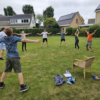Das Sportprogramm am Heutigen Renntag hatte die sportliche Leitung an den Ritskemoei-Lagerstrand verlegt. Zunächst wurden beim Tauziehen die Armmuskel aufgewärmt, anschließend ging es beim entspannten Staffellauf um das Training für die Beine und um gute Koordination.